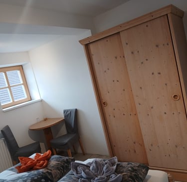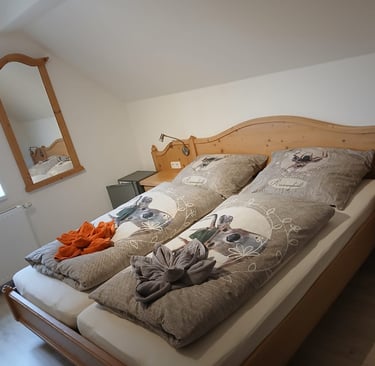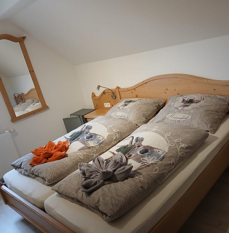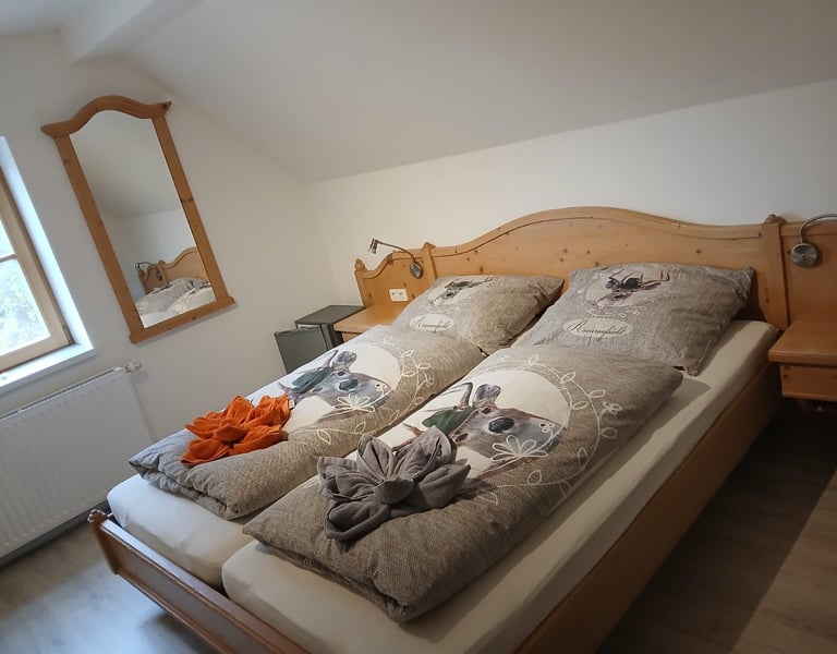 Liebevoll eingerichtetes Doppelzimmer bietet Komfort, Ruhe und einen herrlichen Blick in die Natur – ideal für Paare, Familien, Alleinreisende oder ruhesuchende Gäste.
